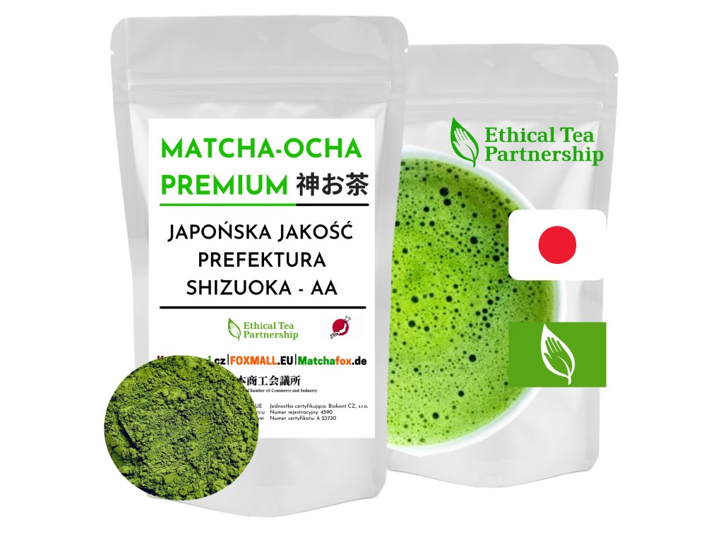 Świeżo zmielona herbata Matcha Premium o żywych, zielonych kolorach, którą po mistrzowsku uprawia się w Japonii. Ci eksperci uważają herbatę matcha za narodowy skarb. Ma ona zapach świeżych kwiatów, kremową piankę i naturalnie zielony kolor.